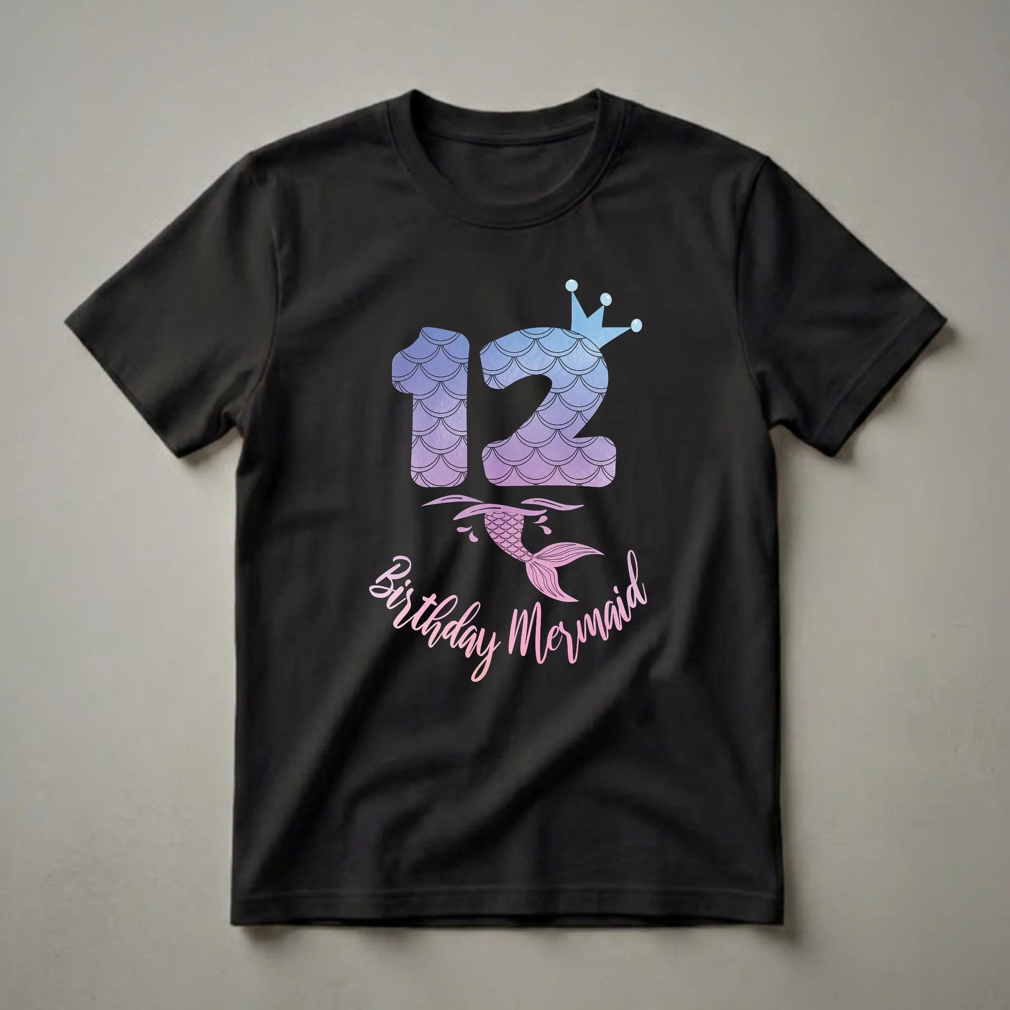 - This tee celebrates her 12th birthday with a beautiful mermaid crown and shimmering scales.