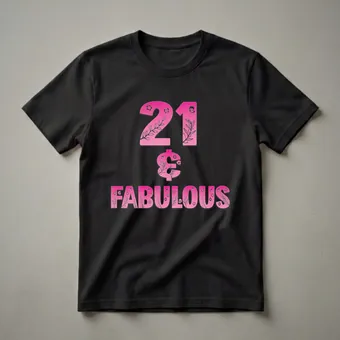 Turning 21 marks a significant milestone, a transition into full adulthood and a time for celebration. This '21 and Fabulous' graphic tee is worn by the young woman embracing this exciting chapter. The striking pink numbers '21' are adorned with delicate floral branches and fluttering butterflies, creating an eye-catching design. Below, the word 'FABULOUS' is presented in a similar decorative font, reinforcing the celebratory theme. This t-shirt is a wonderful way for any girl to express her excitement and confidence as she enters this new phase of life. It's a thoughtful gift for a daughter, sister, or friend who is celebrating her 21st birthday, making her special day even more memorable. Imagine her wearing this vibrant shirt to her birthday brunch, party, or any festive gathering. This shirt is more than just apparel; it's a statement piece for a young woman stepping into her power and celebrating her fabulousness. It's a staple in any birthday collection for those turning twenty-one.