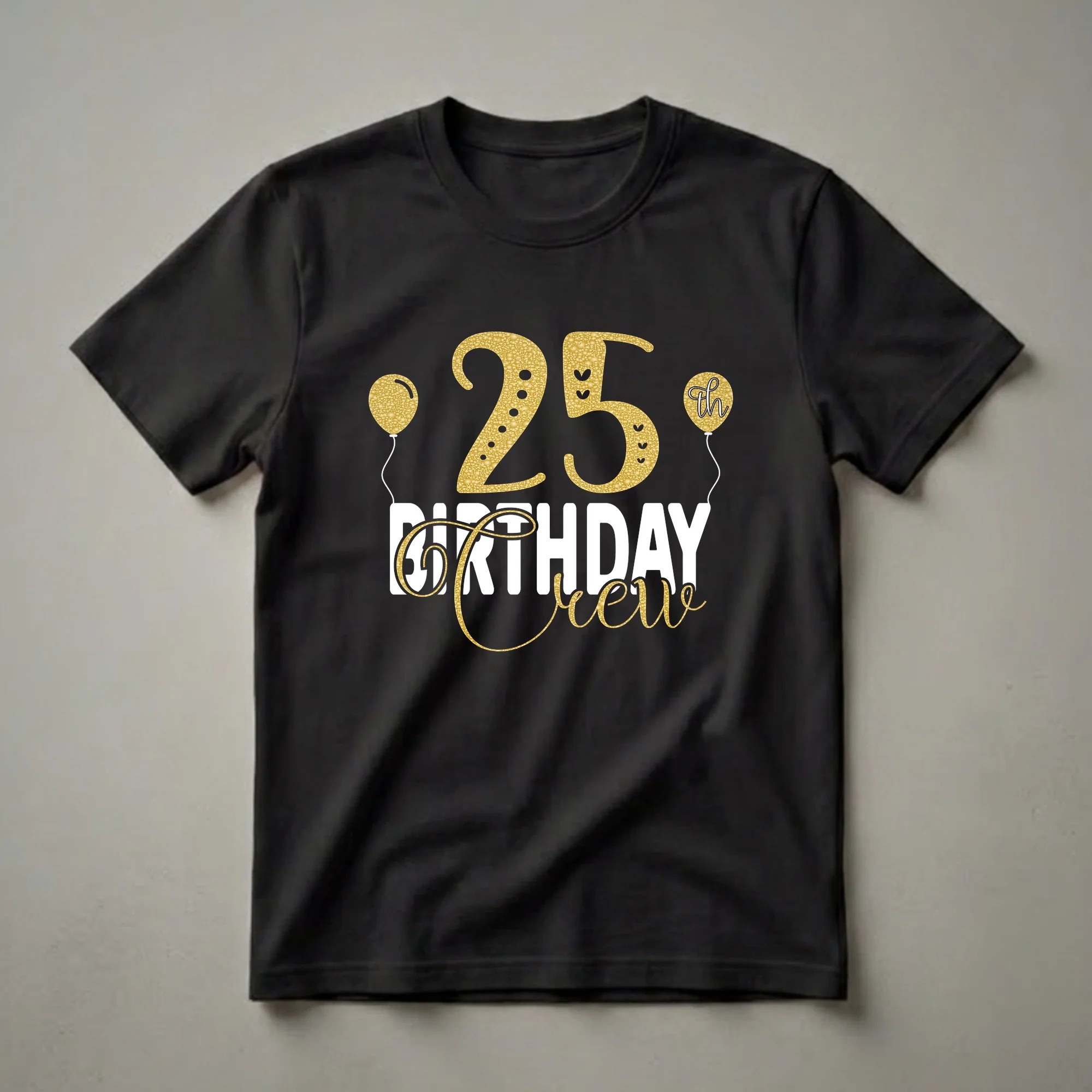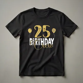 - "25th Birthday Crew" graphic tee for the birthday person.