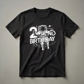 Turning two is a cosmic milestone, and this "2nd Birthday" astronaut tee captures the wonder of space exploration for your little one. The graphic showcases a detailed astronaut in a full spacesuit, floating amidst a starry expanse. A ringed planet and swirling orbits add to the celestial theme, making this shirt an eye-catching piece for any child fascinated by the cosmos. This t-shirt is a fantastic way to commemorate a second birthday, whether it's for a party, a special photoshoot, or just everyday wear. Imagine your child's face lighting up as they receive this unique gift, ready to embark on their own imaginary space adventures. It's a thoughtful gift for any toddler who dreams of becoming an astronaut or exploring the galaxy. This shirt works well for a space-themed birthday party or as a special outfit for the birthday boy or girl. The bold white graphic pops against a dark background, symbolizing the vastness of space and the bright future of a two-year-old. This apparel is sure to be a hit with parents and children alike, celebrating this special age with an out-of-this-world design.