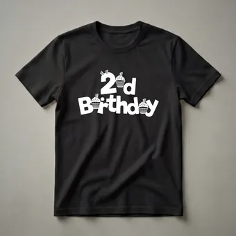 - Graphic tee features bold white "2nd Birthday" lettering with playful cupcakes replacing the 'o' in Birthday.