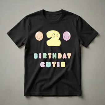 - Features a "2nd Birthday Cutie" graphic with a kawaii number 2 and smiling letters.