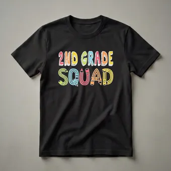 - "2nd Grade Squad" graphic tee for students entering second grade.