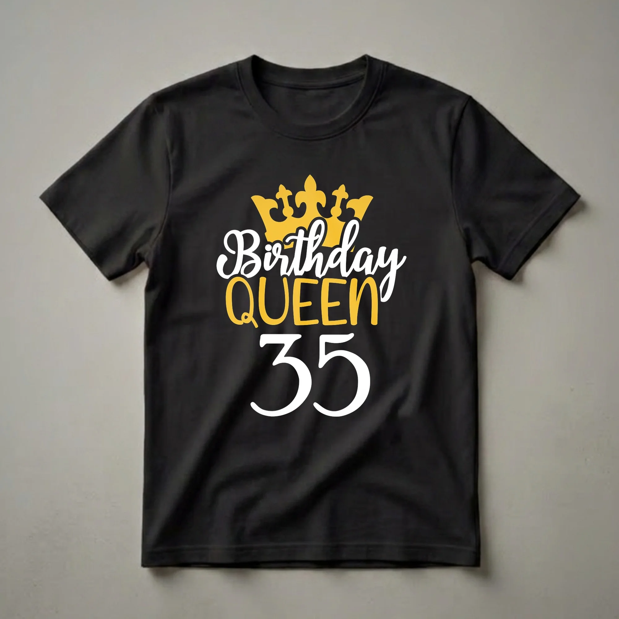 - Celebrate a woman's 35th birthday with this 'Birthday Queen' t-shirt featuring a regal crown.