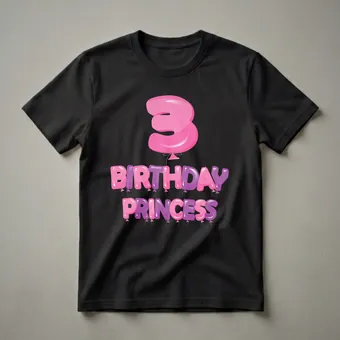 - This "Birthday Princess" tee features a large, glossy pink balloon shaped like the number '3'.