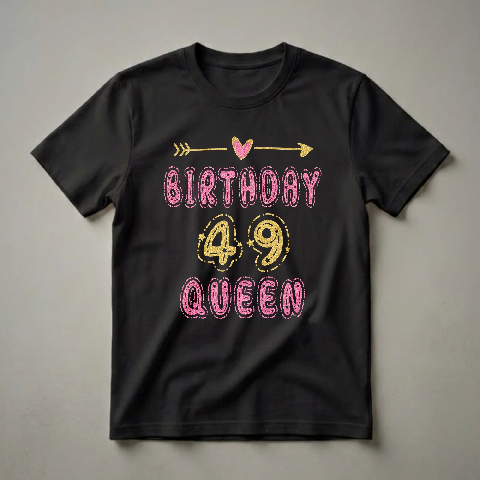 - Features a glittery 'Birthday 49 Queen' graphic.