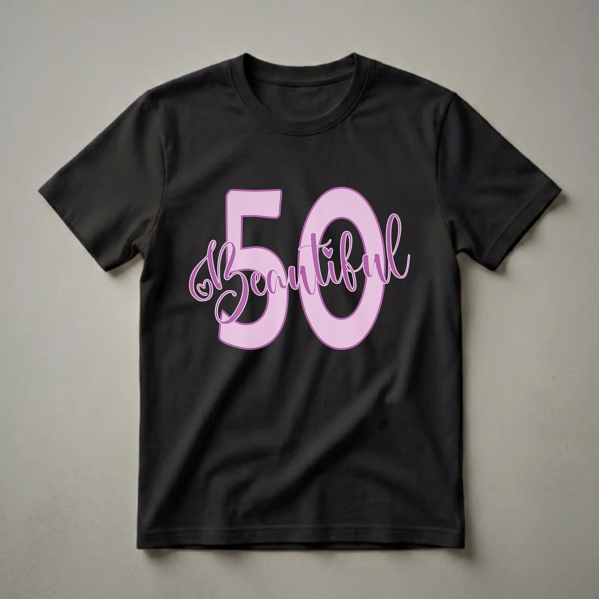 - Celebrate your milestone 50th birthday with this 'Beautiful 50' script graphic t-shirt.
