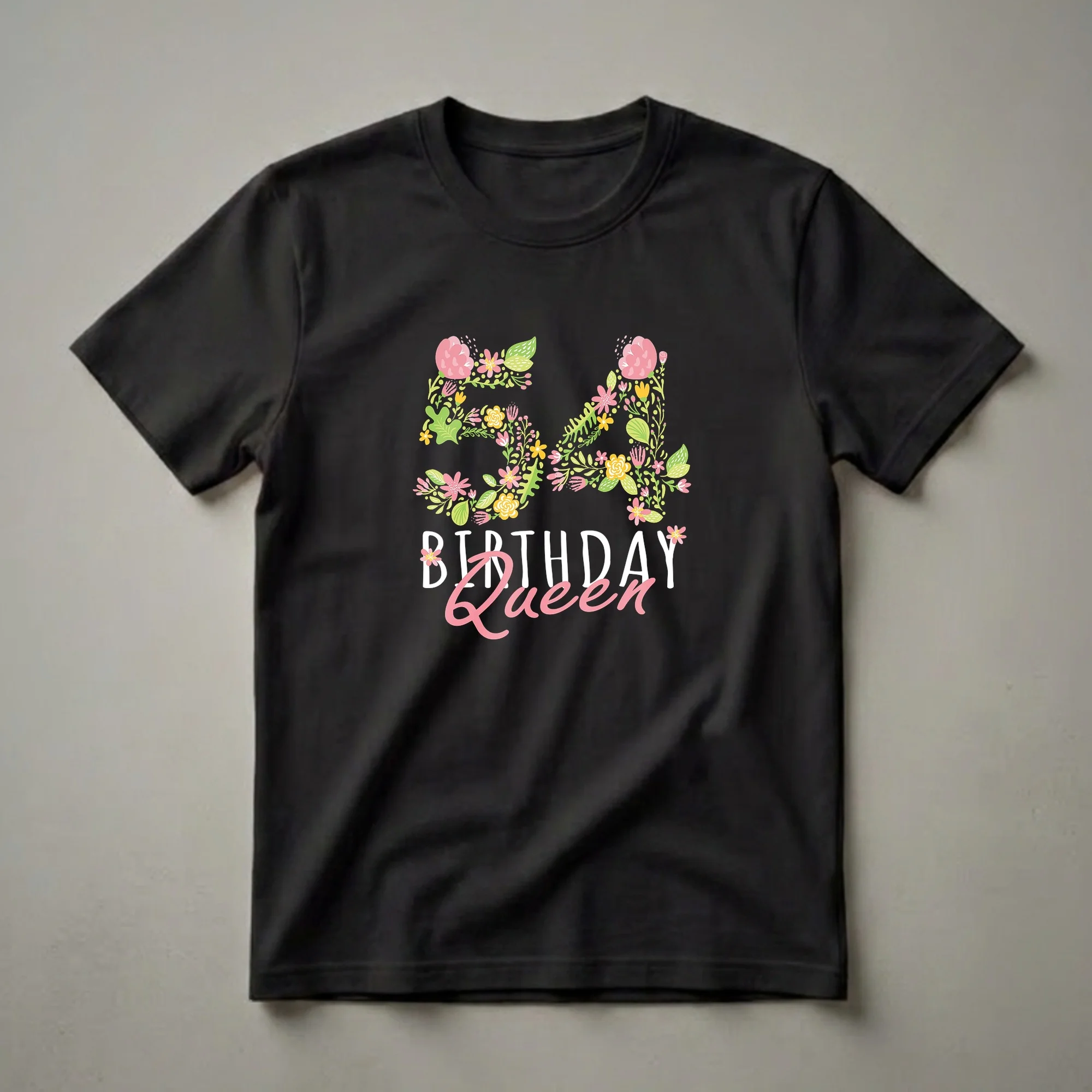 - celebrate turning 54 with this 'Birthday Queen' tee featuring a blooming floral number.