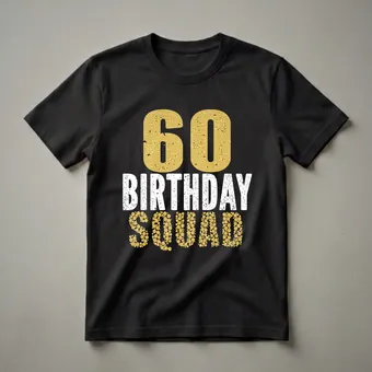 - "60th Birthday Squad" graphic tee for men turning 60.
