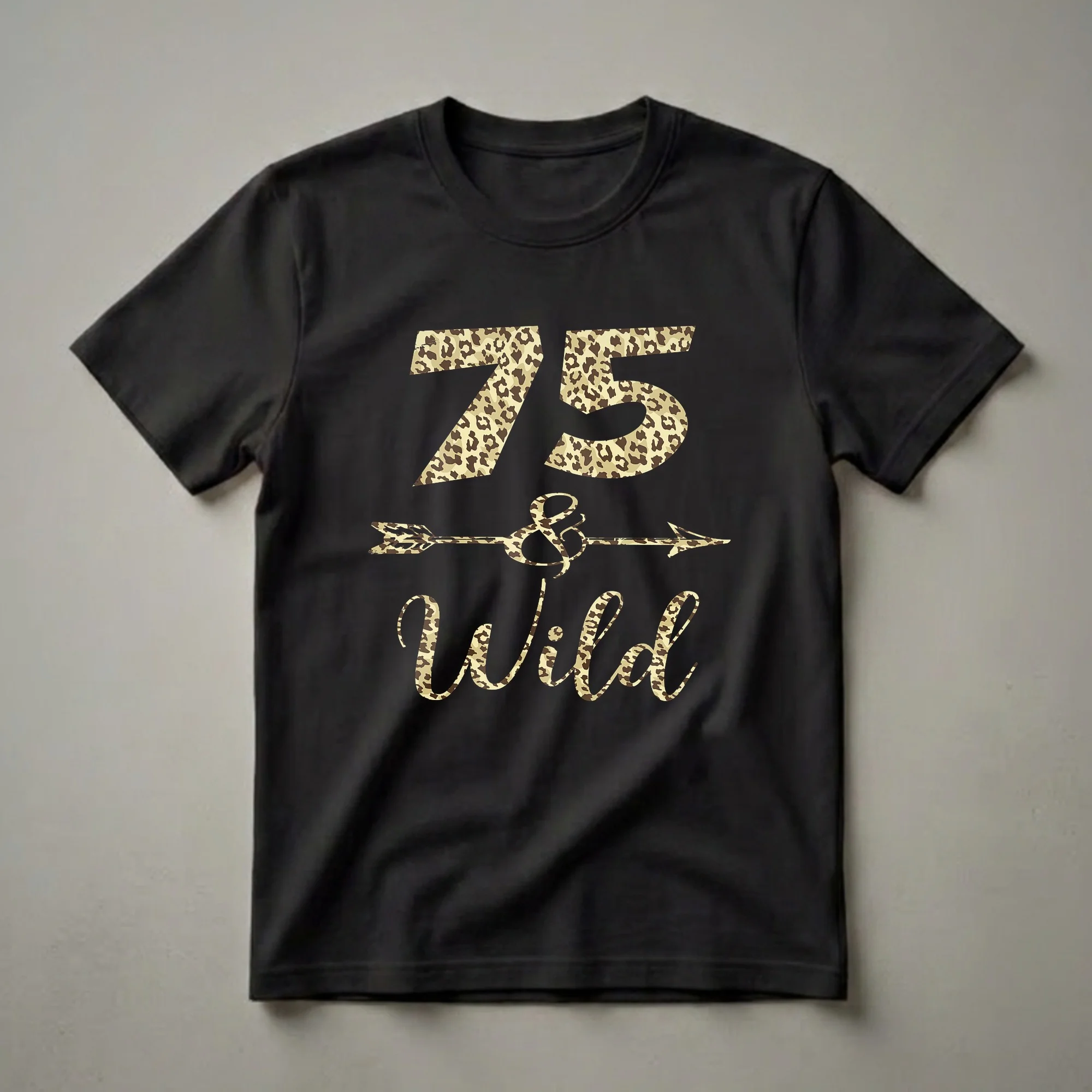 - Celebrate turning 75 with this '75 and Wild' leopard print tee, a roaring good time for her birthday.
