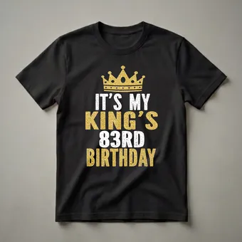Turning 83 is a significant milestone, and this 'It's My King's 83rd Birthday' t-shirt is a fantastic way for a grandpa to celebrate his special day. The design features a regal, textured gold crown positioned above bold lettering that proclaims 'IT'S MY KING'S 83RD BIRTHDAY.' The text alternates between a distressed white and a shimmering gold, creating a visually appealing and celebratory look. This graphic tee is for the patriarch who is turning 83 and wants to wear his birthday pride. It makes a thoughtful gift from a spouse, child, or grandchild who sees him as the king of the family. Imagine him wearing this shirt to his birthday brunch or family gathering, receiving compliments and well wishes. This shirt serves as a fun conversation starter and a memorable keepsake from his 83rd year. It's a staple piece for any grandpa celebrating a milestone birthday, offering a touch of royalty and fun to his special occasion.