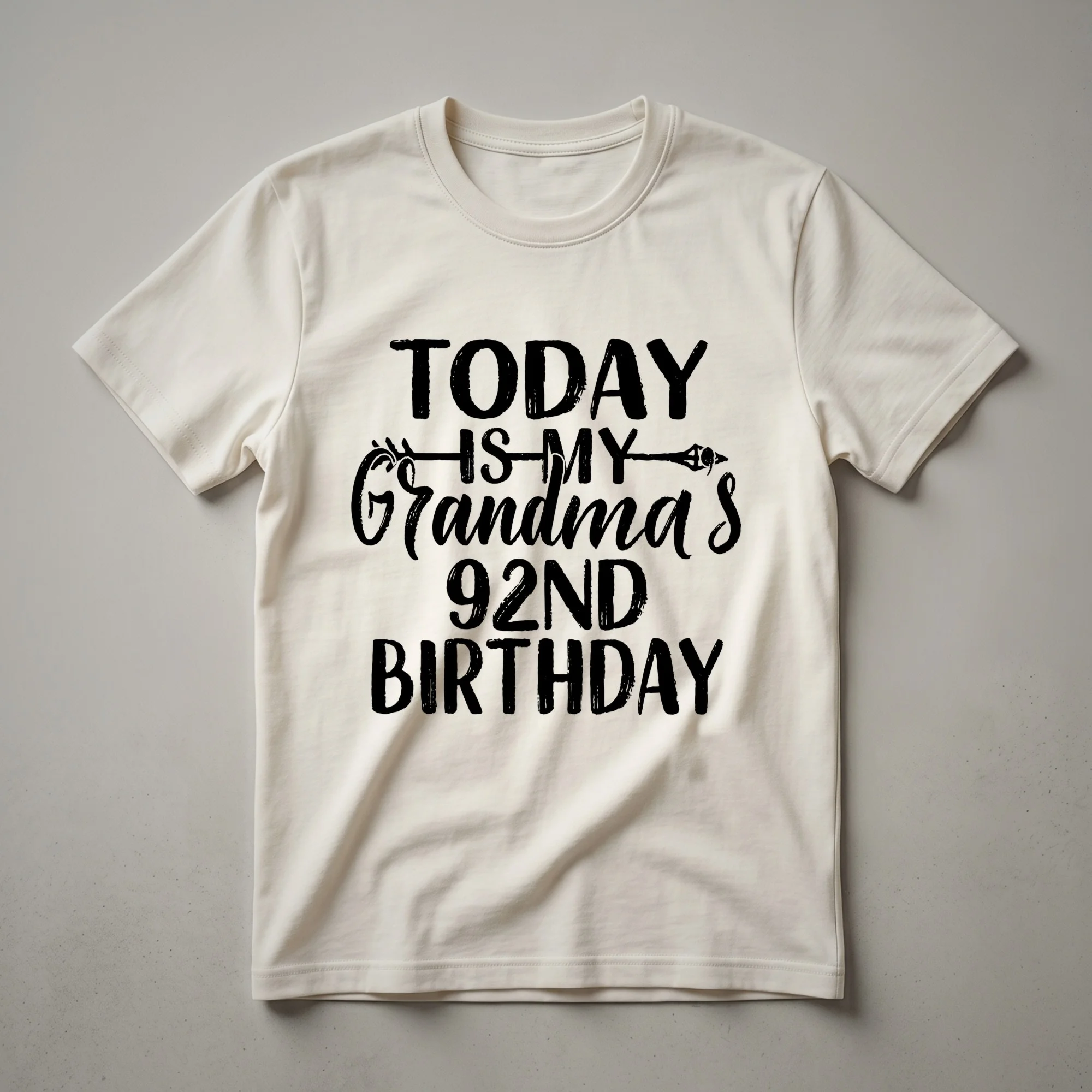 Ninety-two years is a remarkable milestone, and this '92nd Birthday Queen' t-shirt is a wonderful way for Nana to celebrate her special day. The graphic features bold, decorative lettering proclaiming her queen status, making it clear she's the star of the celebration. This tee is a thoughtful gift for any grandmother who is reaching this incredible age, offering a fun and festive way for her to mark the occasion. Imagine Nana wearing this shirt to her birthday brunch or a family gathering, radiating joy and pride. It's more than just apparel; it's a wearable declaration of a life well-lived and a celebration of her enduring spirit. This shirt is a staple for any Nana who loves to feel special on her birthday. It's a fantastic conversation starter and a cherished keepsake from her 92nd year. This graphic tee is a perfect addition to her birthday outfit, ensuring she feels celebrated and cherished on her big day. It's a simple yet impactful way to honor her journey and the love she brings to the family.