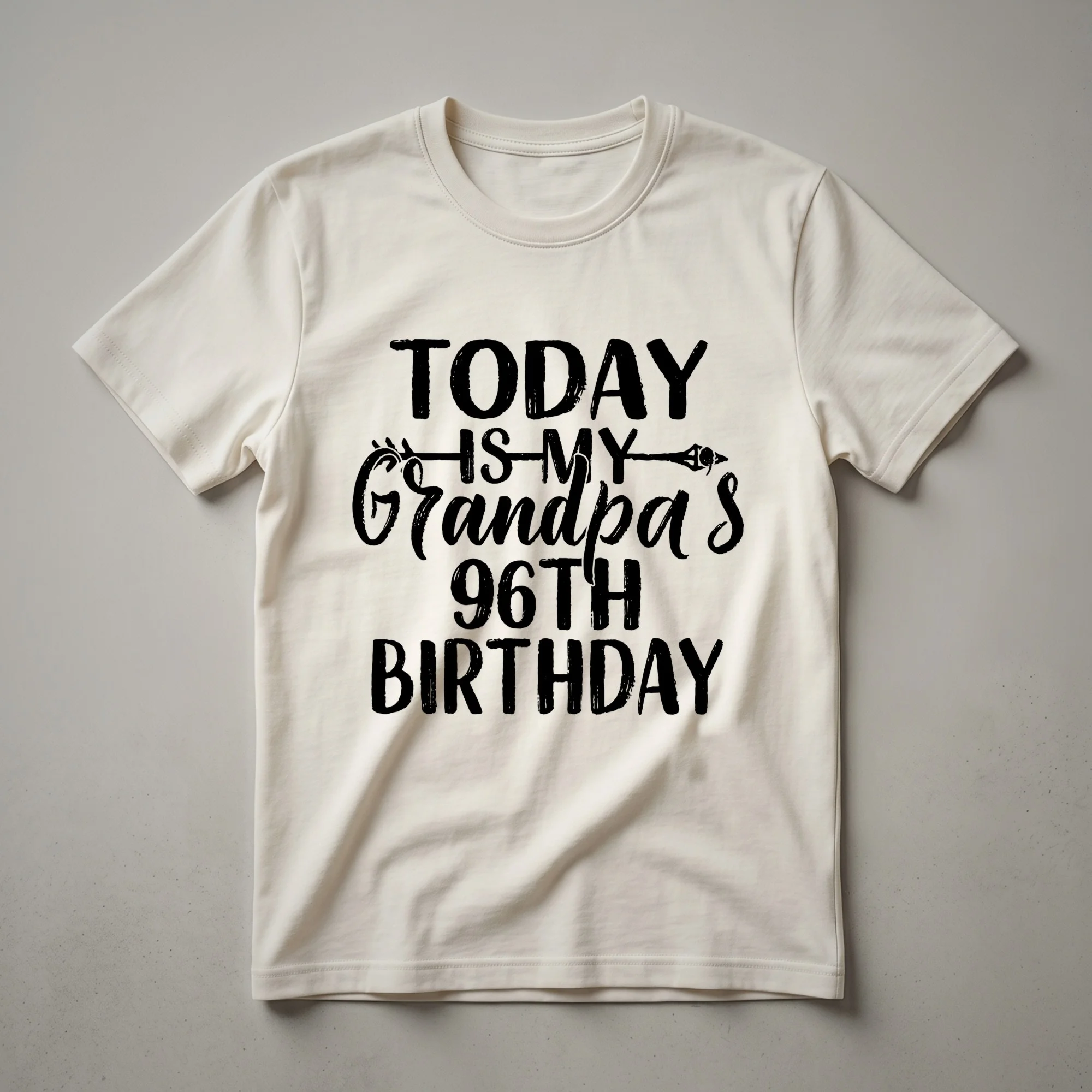 Grandpas turning 96 deserve to be celebrated in style, and this graphic tee is a fantastic way to mark the occasion. The design features bold white lettering that clearly states 'Today Is My Grandpa's 96th Birthday,' making it instantly recognizable at any party or gathering. This shirt is a thoughtful gift idea for grandchildren, children, or anyone who wants to honor the patriarch of the family on his special day. Reaching 96 years is a significant achievement, a testament to a life well-lived and a legacy built over nearly a century. This comfortable t-shirt is a thoughtful choice for him to wear during his birthday celebration, whether it's a large family reunion or an intimate dinner. It serves as a fun conversation starter and a cherished keepsake from a memorable event. Give him a gift that shows how much he's loved and appreciated as he enters his 97th year.