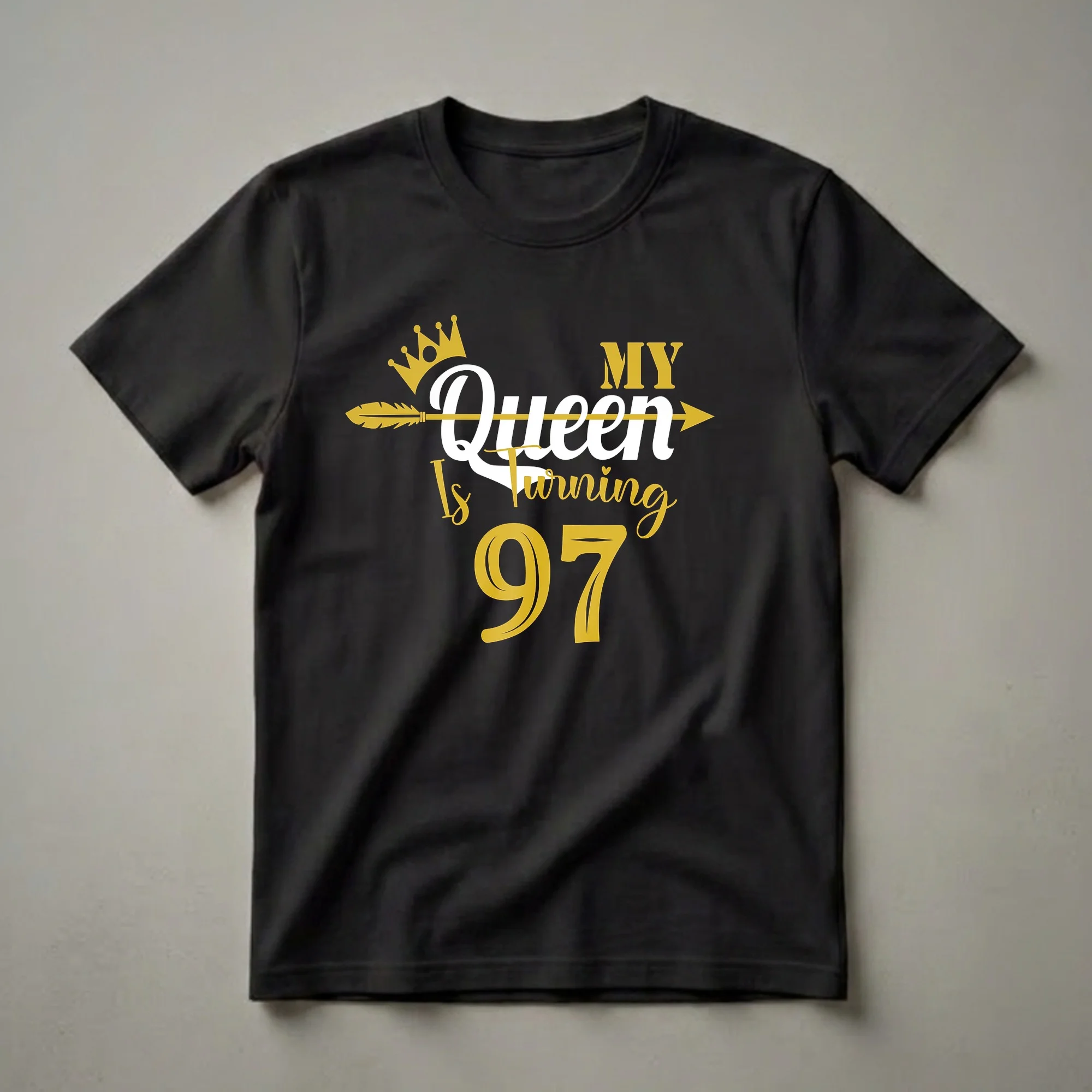- Celebrate your queen's 97th birthday with this elegant 'My Queen Is Turning 97' tee.