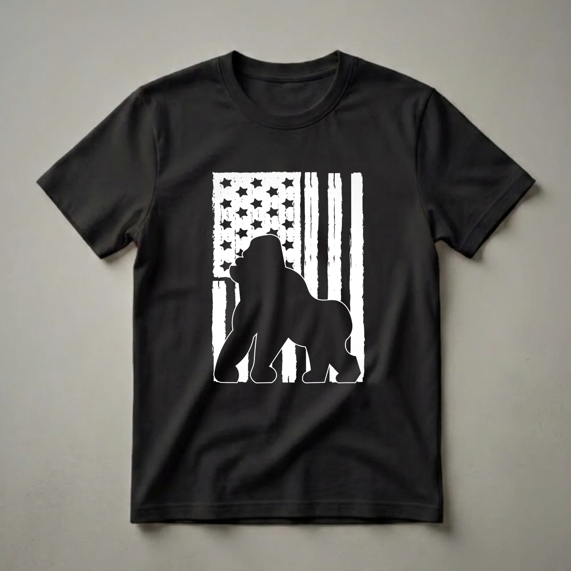 - Showcase your love for gorillas with this unique American flag graphic tee.