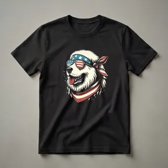 Great Pyrenees owners who want to showcase their love for their majestic white dogs can reach for this eye-catching graphic tee. The design features a stylized illustration of a Great Pyrenees, instantly recognizable by its fluffy white coat and gentle expression. This canine patriot sports a bandana adorned with the American flag's stars and stripes, paired with matching sunglasses that exude a cool, confident vibe. The bandana is tied around its head, and a matching neckerchief adds to the patriotic ensemble. The Great Pyrenees breed, originating from the Pyrenees Mountains between France and Spain, is known for its impressive size, calm demeanor, and protective instincts, often serving as livestock guardians. This shirt is a thoughtful gift for any Great Pyrenees mom or dad, or for someone who appreciates patriotic dog-themed apparel. Wear this unique t-shirt to casual gatherings, dog park visits, or Fourth of July celebrations to spark conversations and display your national pride and canine affection.