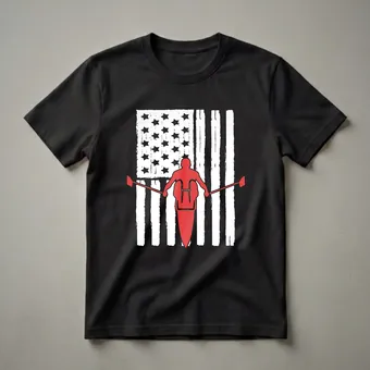 Rowing enthusiasts who want to showcase their passion and national pride will reach for this eye-catching graphic tee. The design features a distressed American flag as the backdrop, with a bold red silhouette of a rower in their boat, oars in hand, positioned centrally. This visual captures the dynamic motion and dedication inherent in the sport of rowing. The American flag, a symbol of national identity, is rendered with a vintage, textured effect, adding depth and character to the design. This shirt is a fantastic way for rowers to express their commitment to the sport and their country, whether they are training on the water, competing, or simply enjoying their downtime. It makes a thoughtful gift for the rower in your life, a thoughtful choice for birthdays, holidays, or any occasion. Wear this t-shirt to the boathouse, to sporting events, or as a casual statement piece that celebrates both athletic pursuit and national spirit. The graphic tee is a staple for any wardrobe that honors the dedication of athletes and the symbolism of the flag.