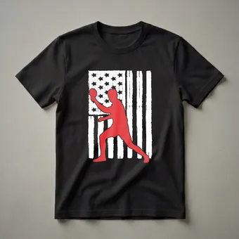 This graphic t-shirt features a bold red silhouette of a table tennis player in action, set against a distressed American flag background. The dynamic pose captures the intensity and focus of the sport, making it a standout piece for any ping pong enthusiast. Table tennis, also known as ping pong, is a fast-paced racket sport played by two or four players who hit a lightweight ball back and forth across a table using small solid rackets. The game requires quick reflexes, strategic thinking, and precise hand-eye coordination. This shirt is a fantastic way for players to express their passion for the sport and their national pride. It makes a thoughtful gift for any table tennis player, coach, or fan who enjoys the thrill of the game. Wear this tee to your next match, a casual get-together, or while watching a professional tournament to show your support and enthusiasm for table tennis and the USA.