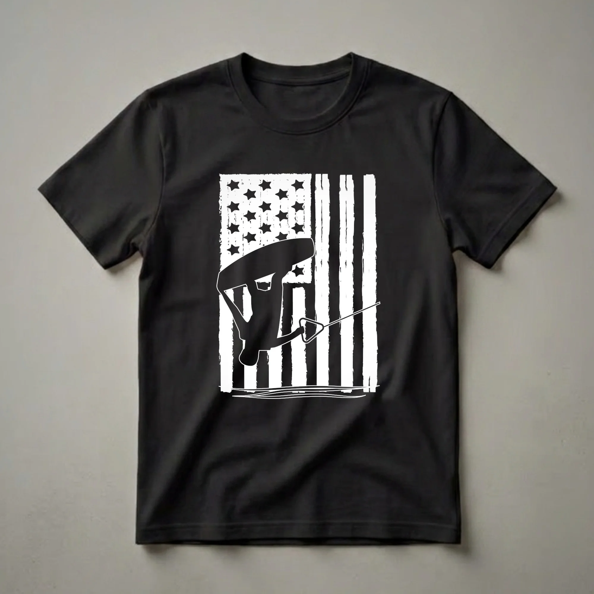 - Graphic t-shirt for water skiers and American flag enthusiasts.