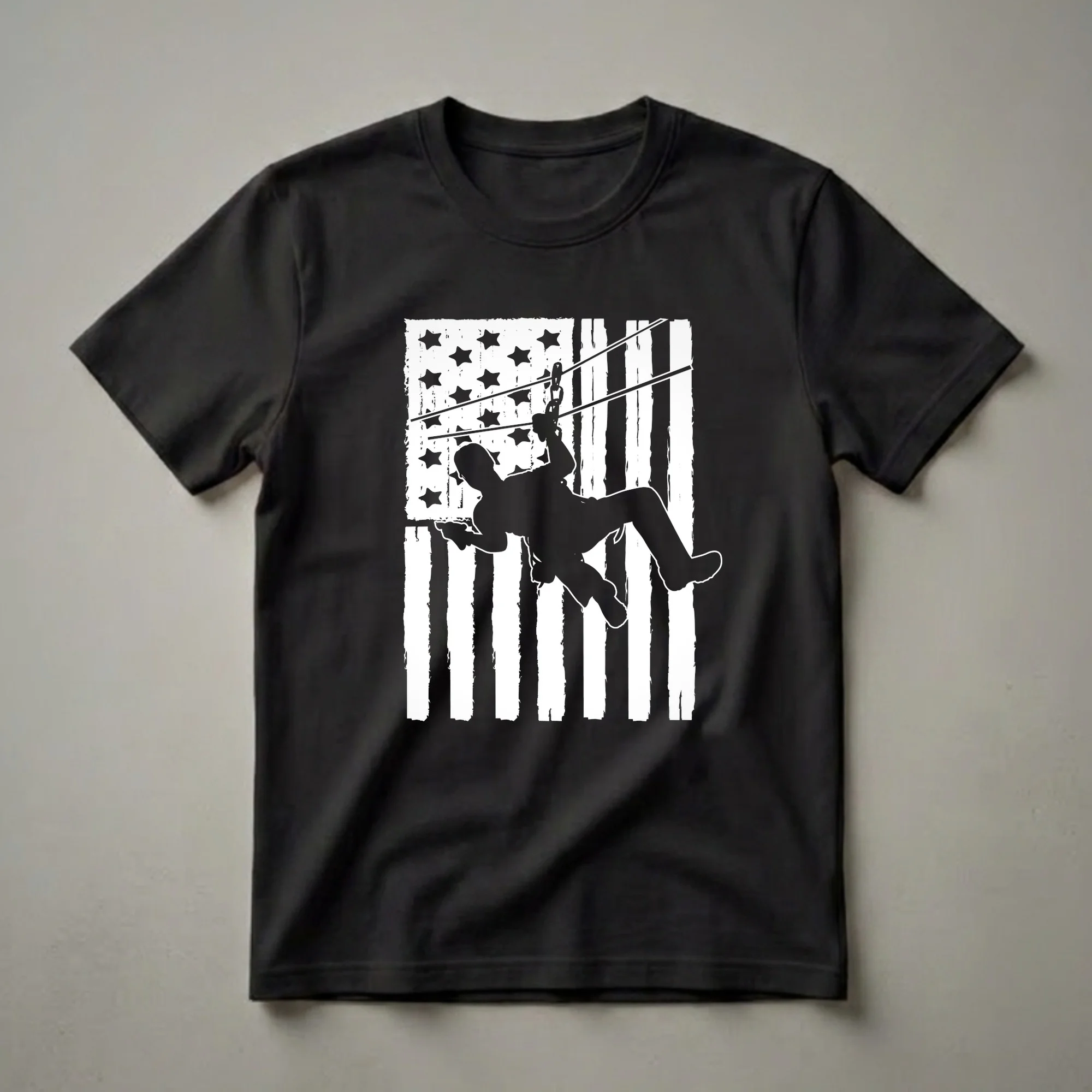 Hover to zoom · tap to expand American Flag Zipline Silhouette Graphic T-Shirt for Adventure Lovers