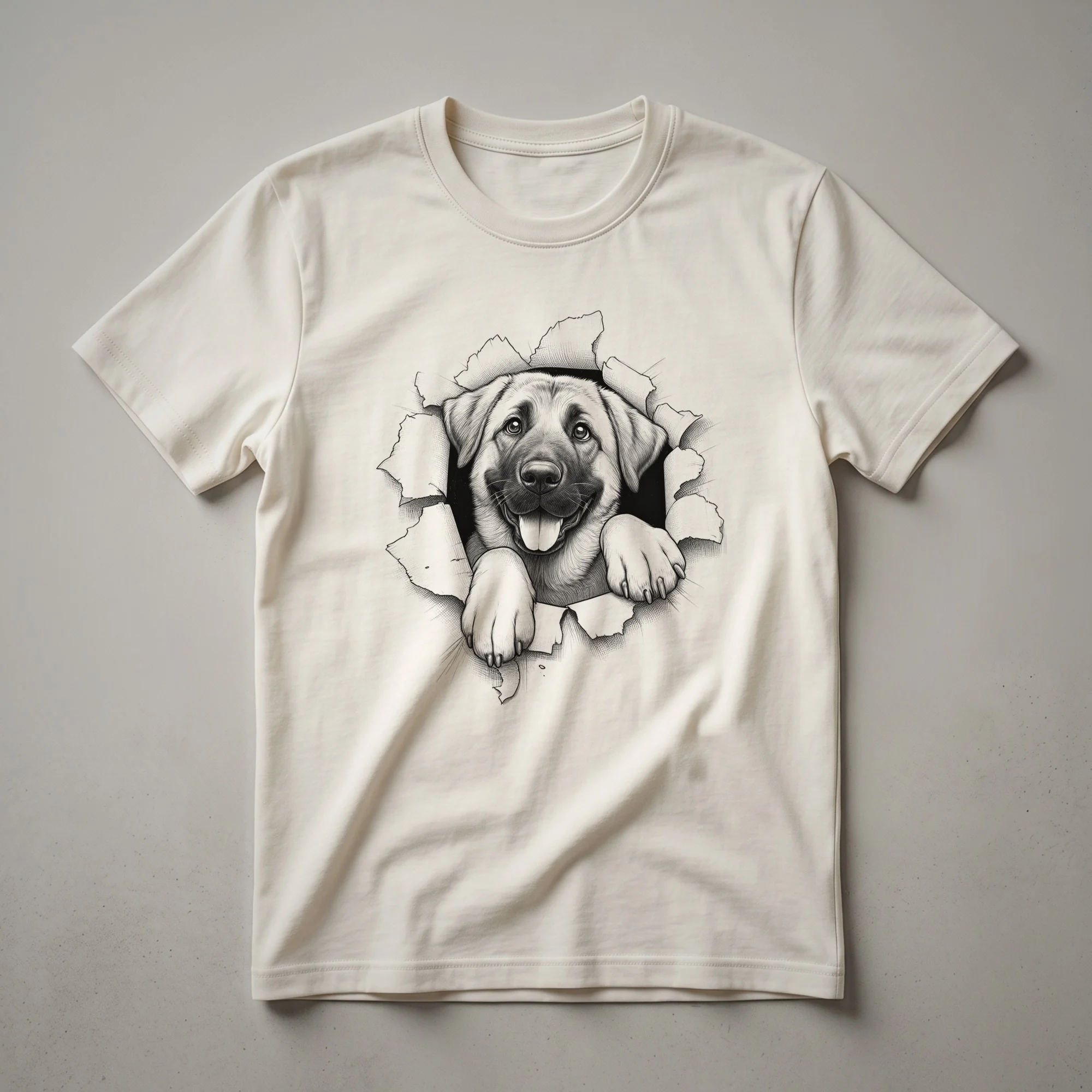 Anatolian Shepherd owners know the breed's protective nature and gentle demeanor. This eye-catching graphic t-shirt features a peeking Anatolian Shepherd with a distressed, vintage aesthetic, celebrating the unique charm of these magnificent dogs. Originating from Turkey, Anatolian Shepherds are renowned for their role as livestock guardians, possessing a calm, independent, and powerful presence. This shirt is a go-to tee for men and women who appreciate the loyalty and strength of this ancient breed. It makes a thoughtful gift for any Anatolian Shepherd mom or dad, or for someone who simply admires these impressive canines. Wear this comfortable tee to casual outings, dog park visits, or while relaxing at home, letting your passion for your furry friend shine through. It's a staple in the collection for any dedicated dog lover.
