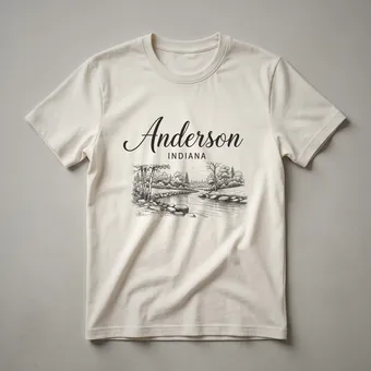 Anderson, Indiana residents and visitors can now wear their hometown pride with this distinctive sketch art t-shirt. The design captures the natural beauty of the area, depicting a flowing river winding through a wooded landscape. Detailed linework illustrates trees, rocks, and the gentle movement of the water, evoking a sense of tranquility and connection to the outdoors. This graphic tee is a thoughtful gift for anyone who calls Anderson home or has fond memories of its scenic spots. The artistic rendering offers a unique way to represent the heart of the Midwest. Whether you're exploring the local trails or enjoying a casual day out, this shirt serves as a conversation starter and a reminder of the charm of Indiana. It's a staple in the collection for those who appreciate artistic interpretations of their favorite places. This apparel is a great way to celebrate your roots or give a meaningful present to a friend or family member who cherishes their connection to Anderson. Wear it to local events, family gatherings, or simply as a comfortable everyday tee that showcases your Hoosier spirit.