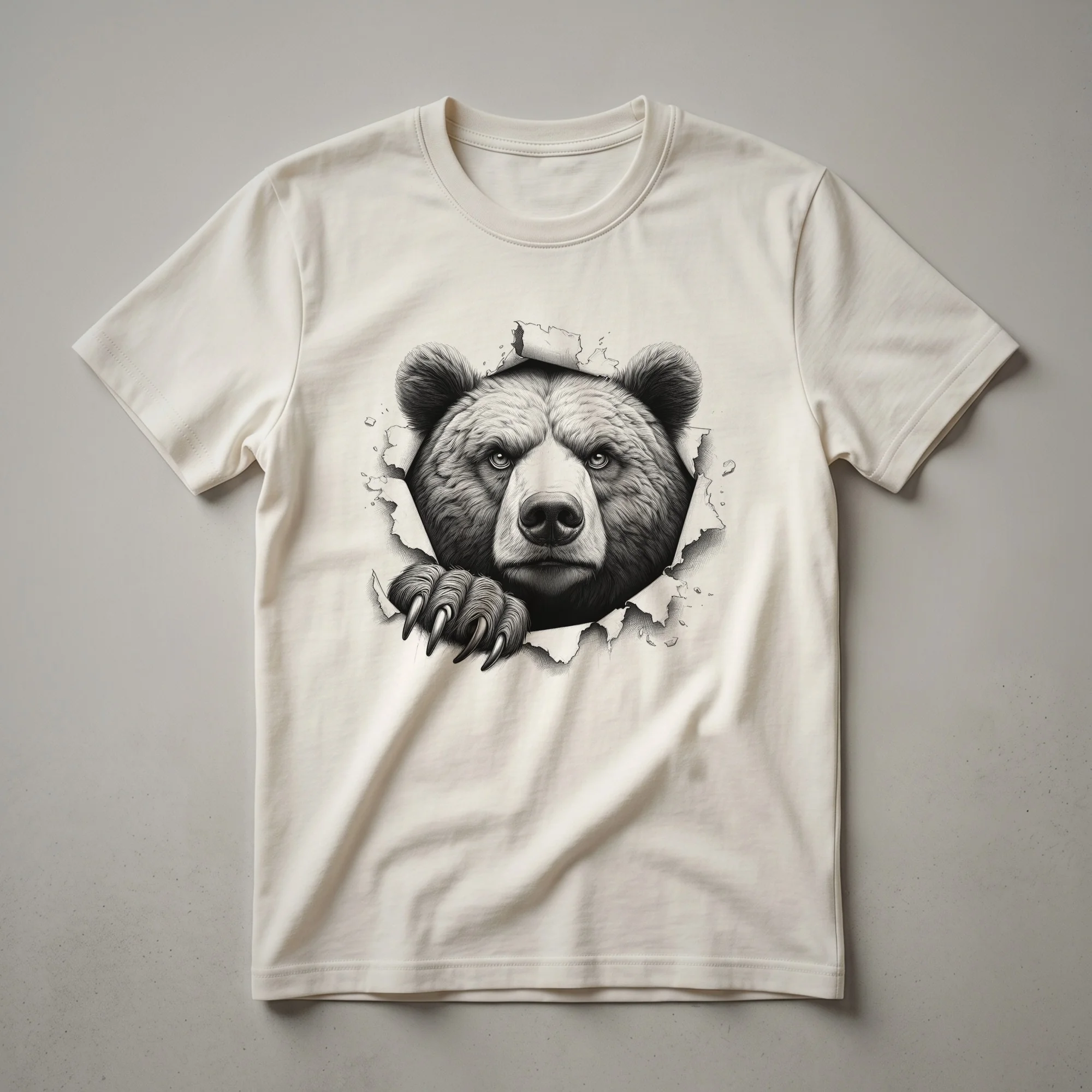For those who appreciate the raw power and untamed spirit of the wilderness, this graphic tee features a striking image of an angry bear peeking out. The design captures the intense gaze and formidable presence of these magnificent creatures, rendered in a distressed style that adds a rugged, authentic feel. Bears, particularly grizzly and black bears, are apex predators native to North American forests and mountains, playing a crucial role in maintaining ecosystem health through their foraging habits. This shirt is a go-to tee for hikers, campers, and anyone who feels a deep connection to the natural world. It makes a thoughtful gift for the wildlife lover in your life who admires these powerful animals. Wear this t-shirt on your next outdoor adventure or casual outing to express your passion for the great outdoors and its inhabitants. This apparel is a bold statement piece for anyone who respects the wild.