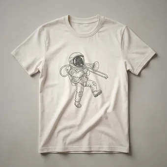 - Features a detailed line art design of an astronaut with a trombone.