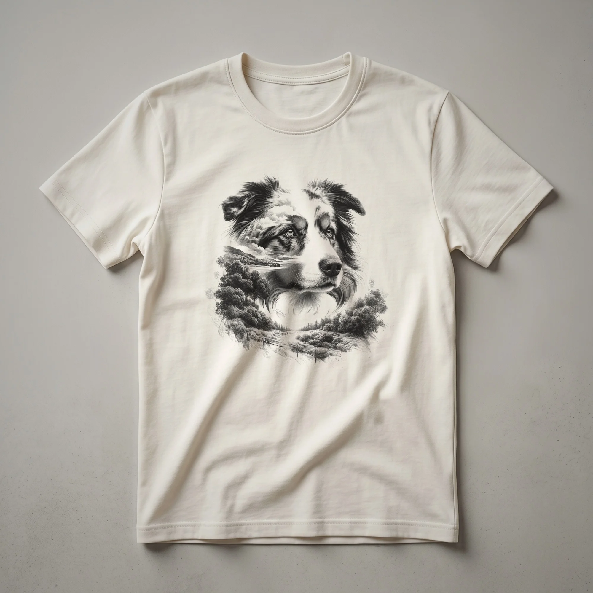 Australian Shepherd owners know the breed's intelligence, energy, and striking appearance. This graphic tee captures that spirit with a silhouette of an Aussie against a serene natural landscape. The design features a majestic mountain range and pine trees, evoking the wide-open spaces where these active dogs often thrive. Australian Shepherds, originally bred for herding livestock in the western United States, are known for their loyalty and eagerness to please. This shirt is a wonderful way for any Australian Shepherd mom or dad to express their connection to their beloved canine companion and their appreciation for the great outdoors. It makes a thoughtful gift for the Aussie enthusiast in your life, whether they are celebrating a birthday or just want to show off their furry friend. Wear this comfortable tee on your next hike, to the dog park, or simply while relaxing at home with your loyal Aussie by your side. It's a staple in the collection for anyone who adores this versatile and spirited breed.