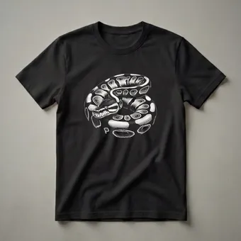 Reptile enthusiasts who appreciate the intricate beauty of snakes will reach for this unique Ball Python graphic tee. The design features a highly detailed, black and white illustration of a ball python coiled in a perfect circle against a stark black background. Every scale and pattern is rendered with striking precision, capturing the natural elegance of this popular serpent. Ball pythons, native to West and Central Africa, are known for their docile temperament and their ability to curl into a tight ball when threatened, a behavior that gives them their common name. This tee works well for anyone fascinated by herpetology or simply drawn to the mesmerizing patterns of snakes. It makes a thoughtful gift for the snake keeper in your life or for someone who admires these fascinating creatures. Wear this shirt to your next reptile expo, a casual outing with fellow enthusiasts, or simply to express your passion for these incredible animals. This t-shirt is a conversation starter for any snake lover.