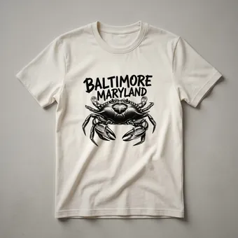 - Features a detailed blue crab illustration and bold "BALTIMORE MARYLAND" text.