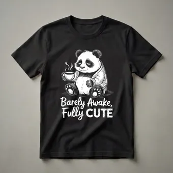 Panda moms and dads who appreciate a good laugh will reach for this humorous graphic tee. The design features a black and white illustration of a panda bear, dressed in a sweater, sitting with its eyes half-closed and holding a steaming cup of coffee. Wisps of steam rise from the mug, emphasizing the morning grogginess. Below the panda, bold white lettering reads, "Barely Awake, Fully CUTE." This shirt captures the universal feeling of needing that first cup of coffee to face the day. Pandas, known for their distinctive black and white markings and their diet primarily consisting of bamboo, are native to the mountain ranges of central China. This tee makes a thoughtful gift for anyone who identifies with the struggle of waking up, especially those who adore these gentle giants. It's a fun way to express your personality, a thoughtful choice for casual outings, game nights, or just lounging around the house on a lazy weekend morning. Wear this shirt to show off your love for pandas and your relatable morning routine.