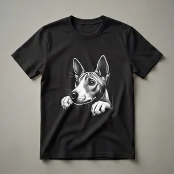 Basenji owners know their dogs are truly unique. This eye-catching graphic tee features a detailed scratchboard illustration of a Basenji dog peeking over an edge, its alert ears and curious eyes capturing the breed's intelligent and inquisitive nature. The Basenji, often called the 'barkless dog,' is known for its distinctive yodel and its origins in Central Africa, where it was used for hunting. This artful depiction brings that distinctive charm to life, making it a standout piece for any dog enthusiast. This t-shirt is a thoughtful gift for the Basenji mom or dad who appreciates unique dog art and wants to wear their passion. It's a go-to tee for casual outings, dog park visits, or simply relaxing at home with your canine companion. The intricate linework of the scratchboard style adds a sophisticated touch, ensuring this shirt is as stylish as it is expressive. Celebrate the enigmatic Basenji with this beautifully rendered graphic shirt, a perfect addition to any dog lover's wardrobe.