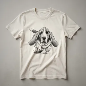 - Features a vintage-style running Basset Hound design.