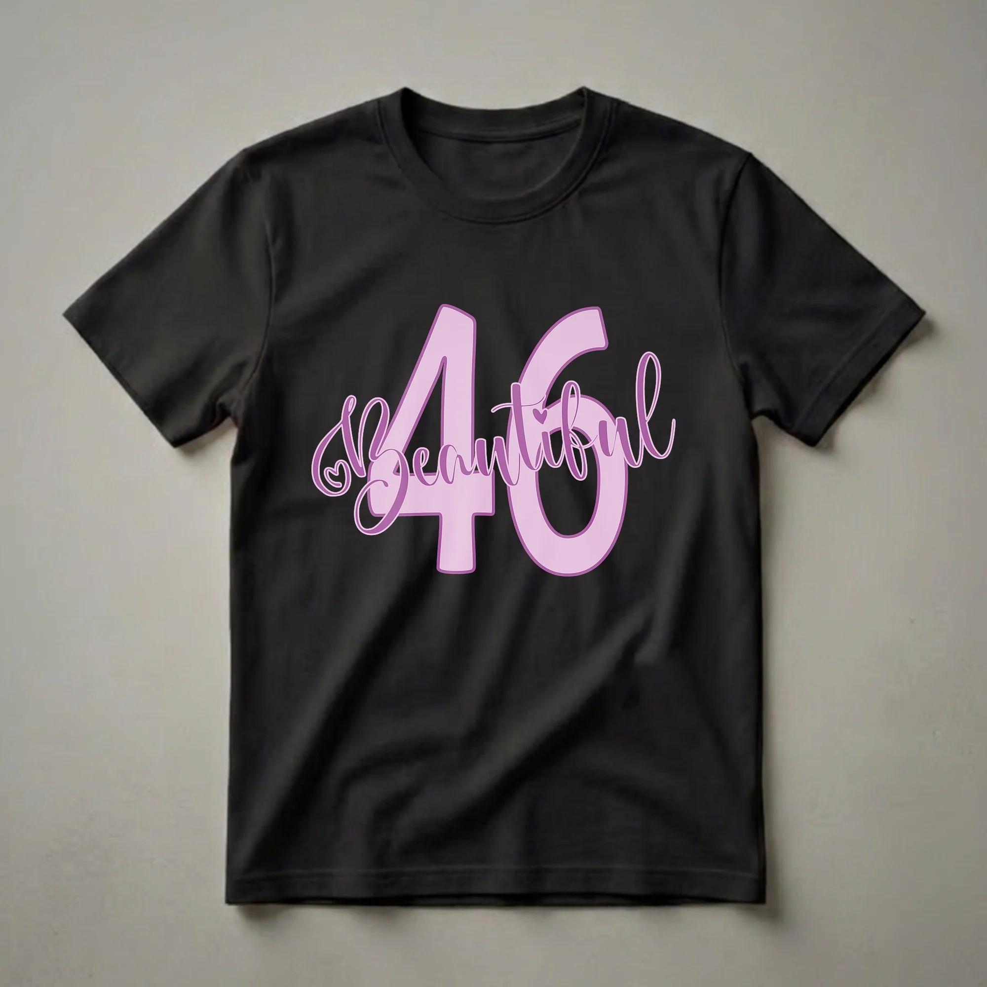 - This 'Beautiful 46' graphic tee celebrates women embracing their 46th year with style and confidence.