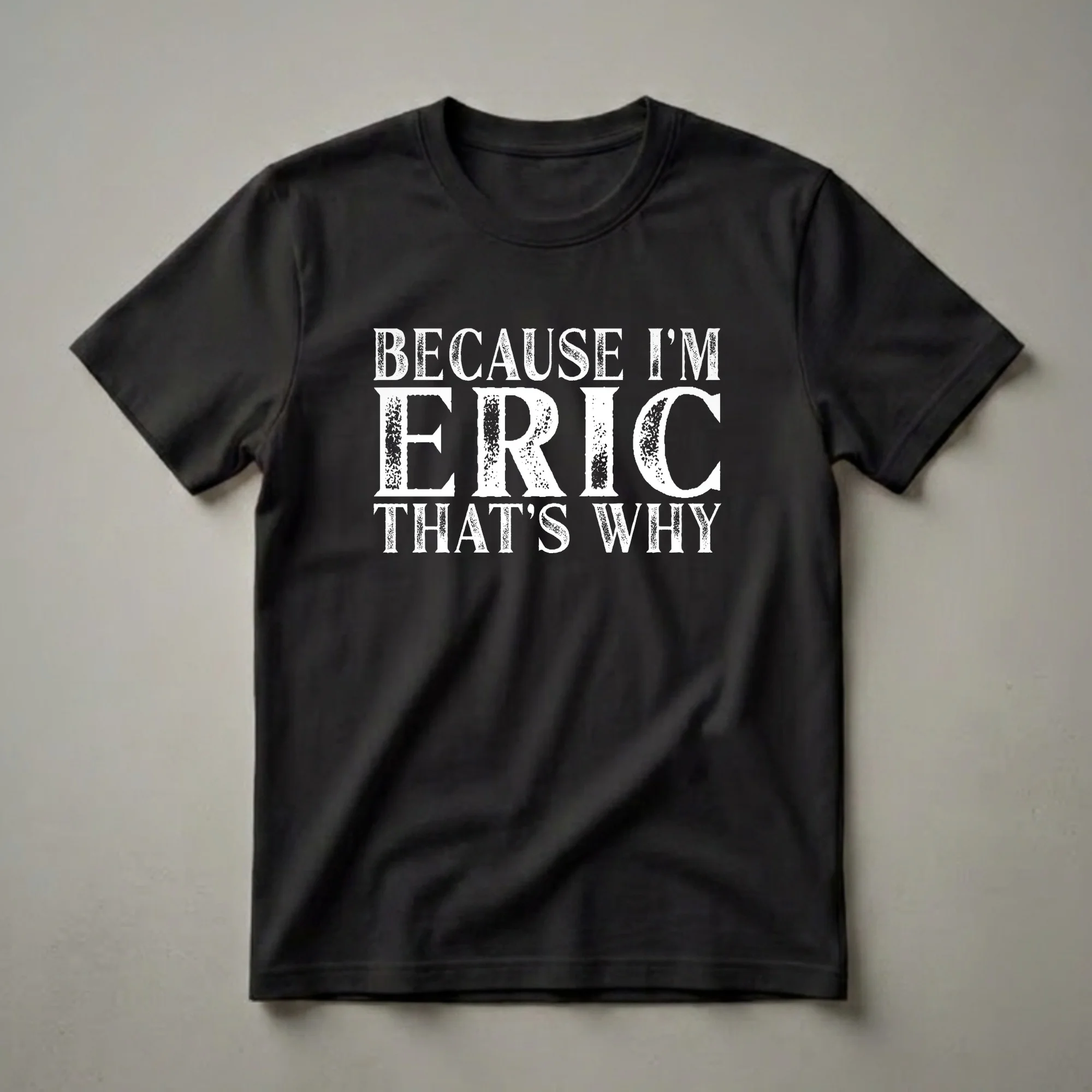 - Personalized 'Because I'm Eric That's Why' graphic tee for men named Eric.