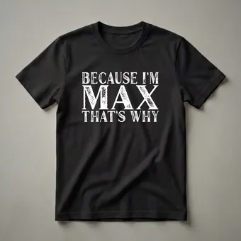 - Features the bold statement 'BECAUSE I'M MAX THAT'S WHY' for anyone named Max.