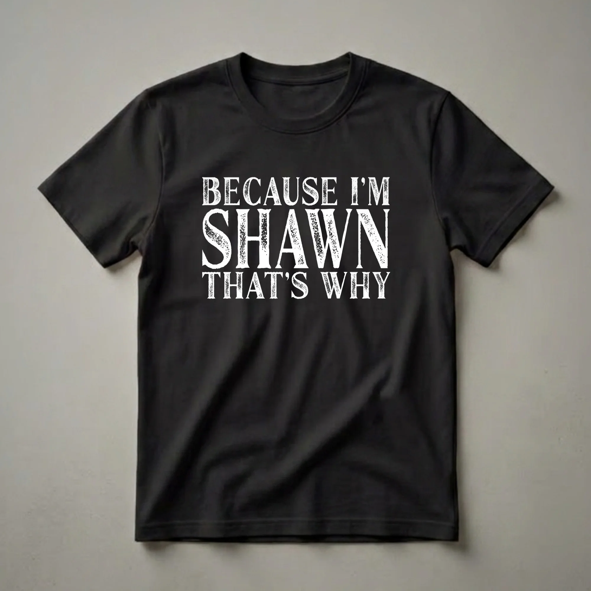 - Features the statement 'Because I'm Shawn That's Why' in distressed white font.
