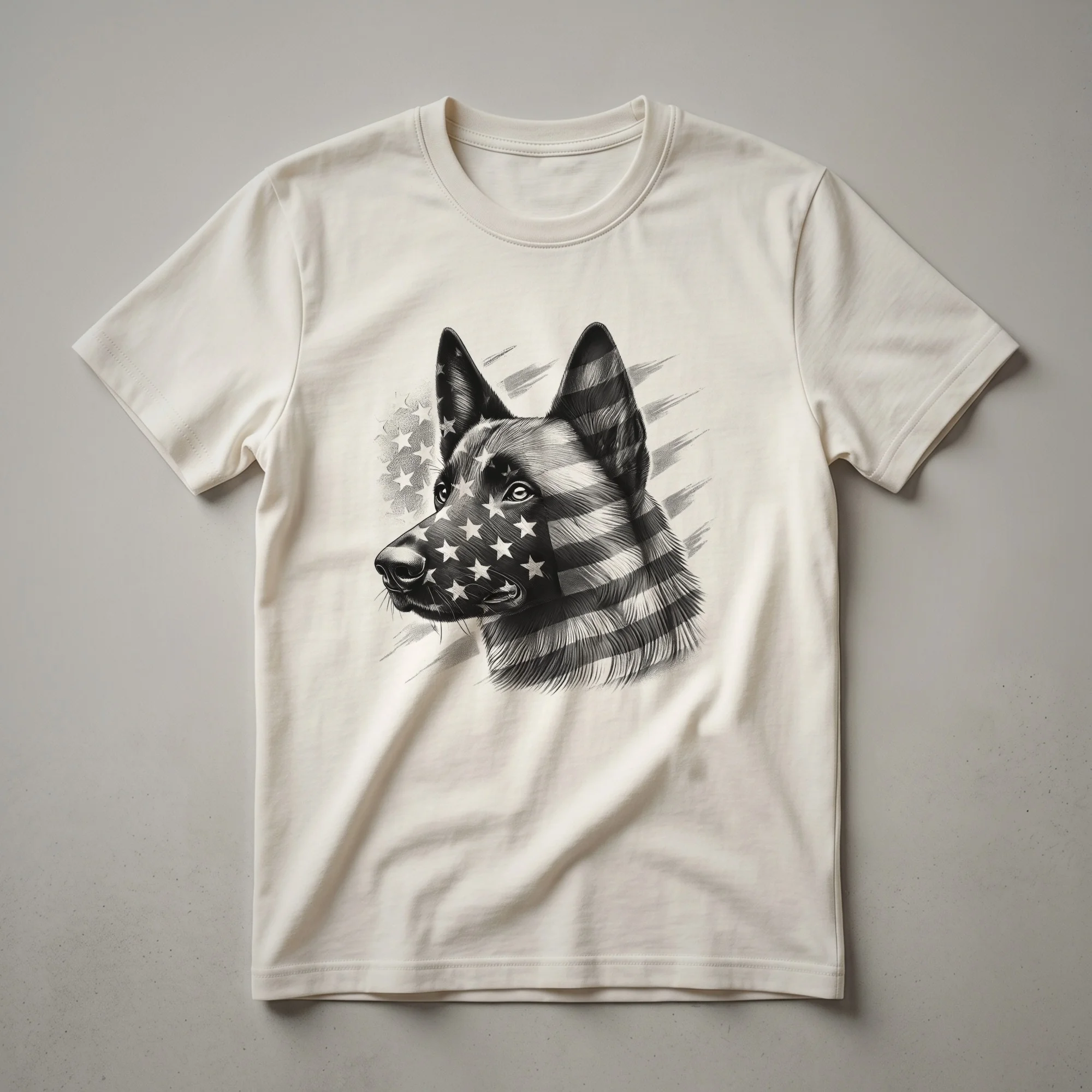 Belgian Malinois owners know their breed's intelligence and protective nature, making this graphic tee a striking way to showcase that bond. This eye-catching shirt features a Belgian Malinois sporting cool sunglasses, with the iconic American flag design subtly integrated into its face. It's a fantastic way for any proud owner to celebrate their canine companion and their love for the USA. The design is printed on a comfortable tee, making it a go-to choice for casual outings or Fourth of July celebrations. This shirt works well for dog moms and dads who want to express their national pride alongside their furry friend. It makes a thoughtful gift for any Belgian Malinois enthusiast who appreciates unique dog-themed apparel. Wear it to barbecues, parades, or simply while enjoying a day out with your loyal dog.