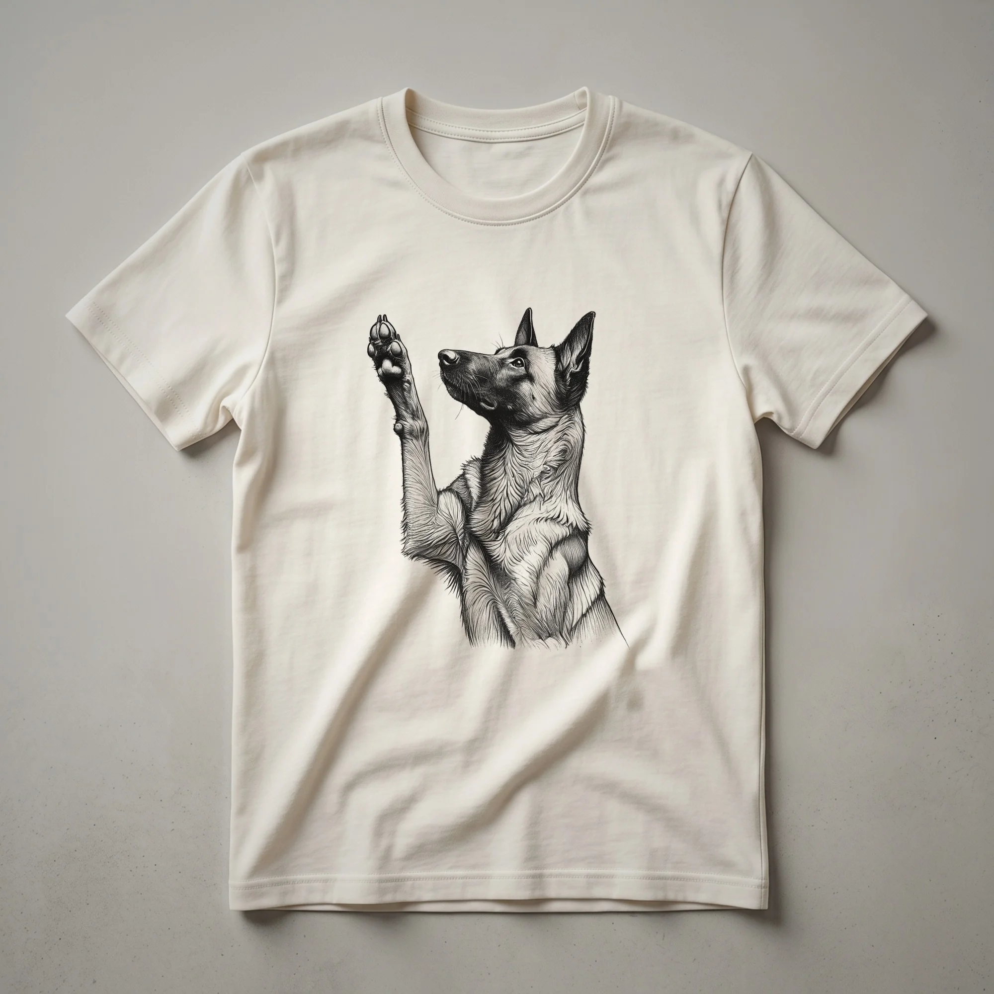 Dog moms and dads can truly appreciate the spirited loyalty of their Belgian Malinois with this blooming paw print graphic tee. This eye-catching graphic tee celebrates that special bond with a unique design. The artwork features a stylized Belgian Malinois, its form softened by delicate floral elements that weave around the dog's silhouette. A charming paw print is integrated into the design, symbolizing the paw-sitive impact these dogs have on our lives. Belgian Malinois are known for their versatility, often excelling in police work, protection, and as devoted family pets, requiring consistent training and socialization. This t-shirt is a wonderful way for any Belgian Malinois mom or dad to express their pride. It makes a thoughtful gift for birthdays, holidays, or just because. Imagine wearing this comfortable shirt to your next dog park visit or while relaxing at home with your furry friend. This shirt is a staple for any dog lover's wardrobe, offering a blend of style and canine appreciation.