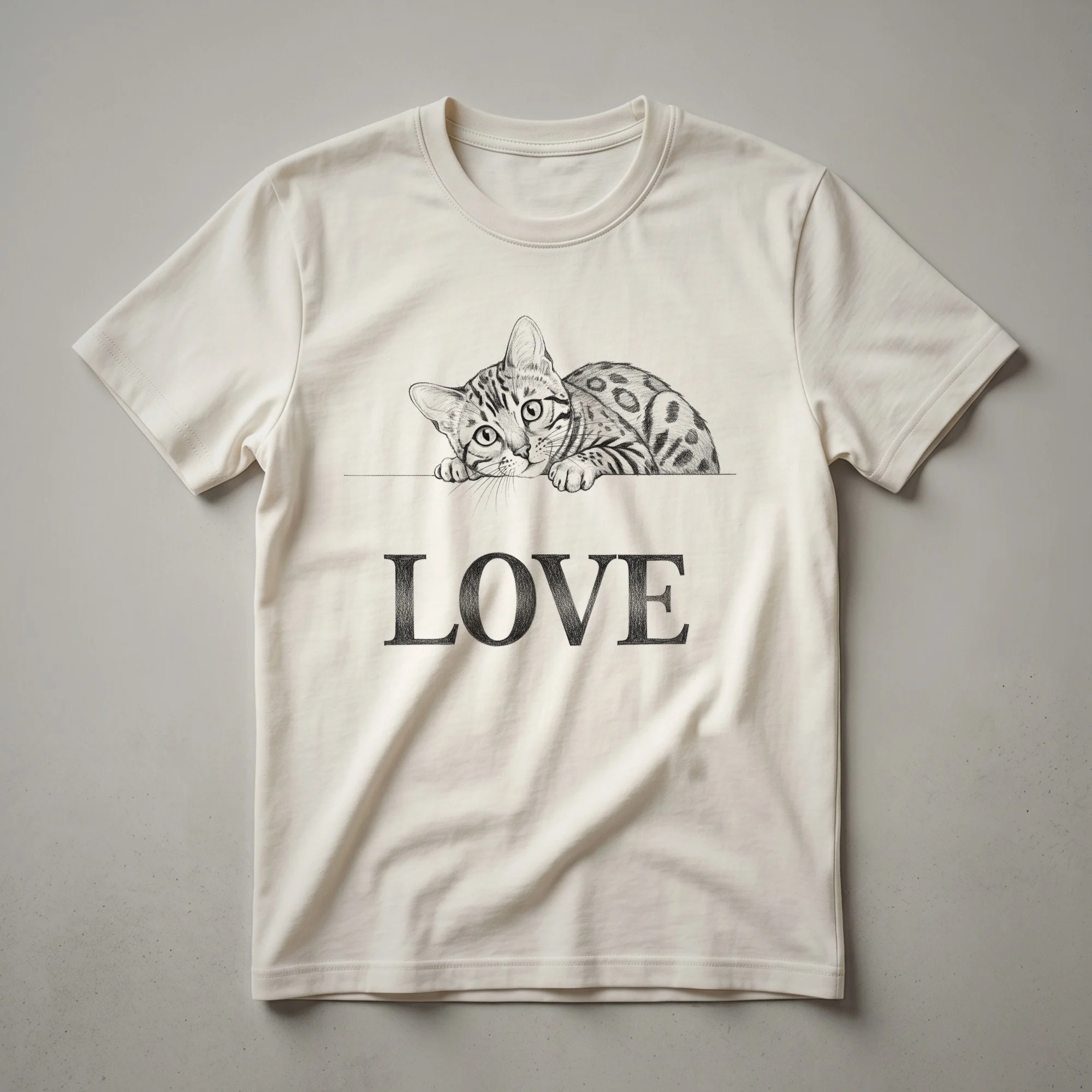 - Bengal cat face graphic t-shirt for proud cat moms.