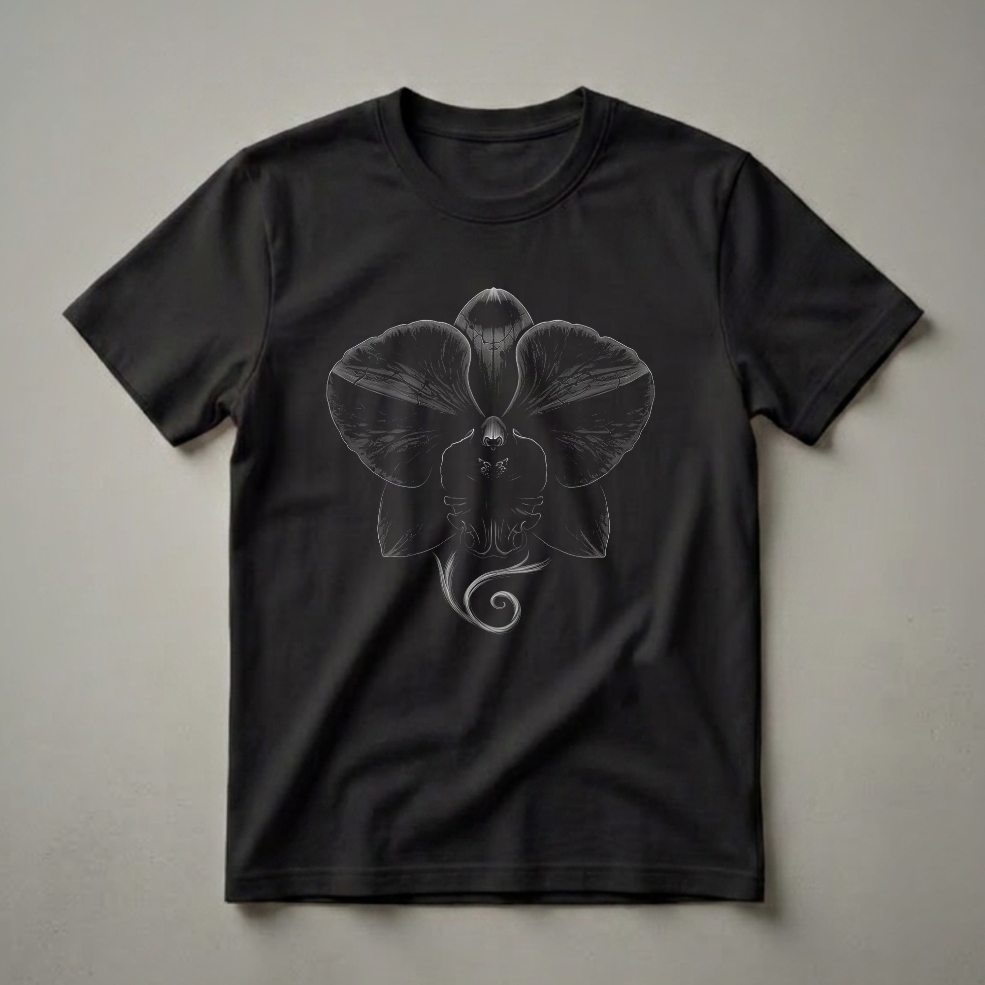 - Graphic t-shirt for orchid enthusiasts and lovers of gothic art.