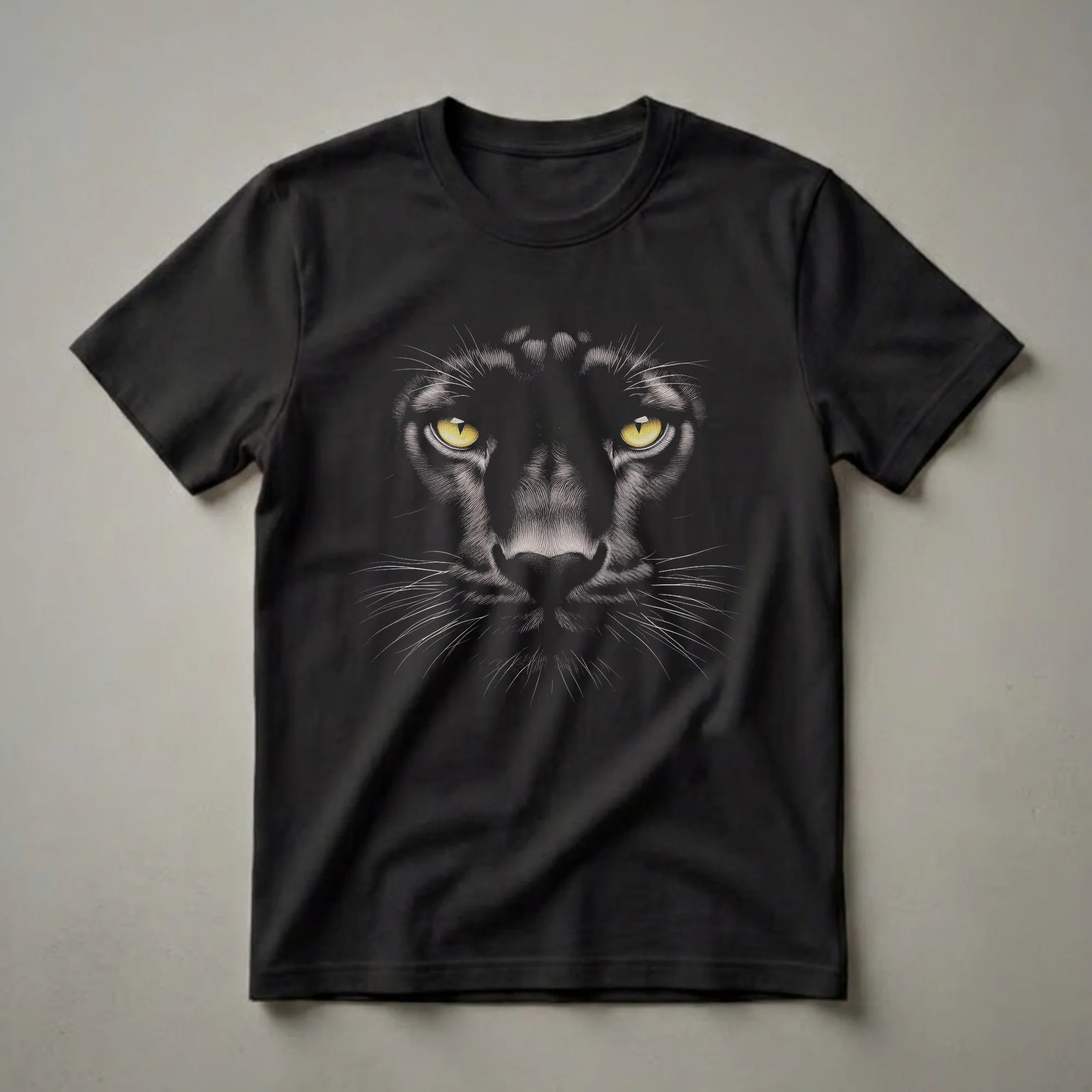 Wildlife enthusiasts and admirers of big cats will appreciate the intense gaze of this black panther drawing. The artwork features a detailed, close-up depiction of the panther's face, rendered with fine linework that emphasizes the texture of its fur and the piercing intensity of its bright yellow eyes. The black panther, a melanistic variant of several species of large cats, is known for its stealth and power, often found in the dense rainforests of Asia and Africa. This striking graphic tee captures the enigmatic allure of these magnificent predators. It's a staple in the collection for anyone who respects the wild. This shirt works well for hikers, nature photographers, or anyone who wants to wear their appreciation for these powerful animals. Makes a thoughtful gift for the wildlife lover in your life who appreciates detailed art and the untamed beauty of the natural world. Wear it on your next outdoor adventure or to a casual gathering to spark conversations about conservation.