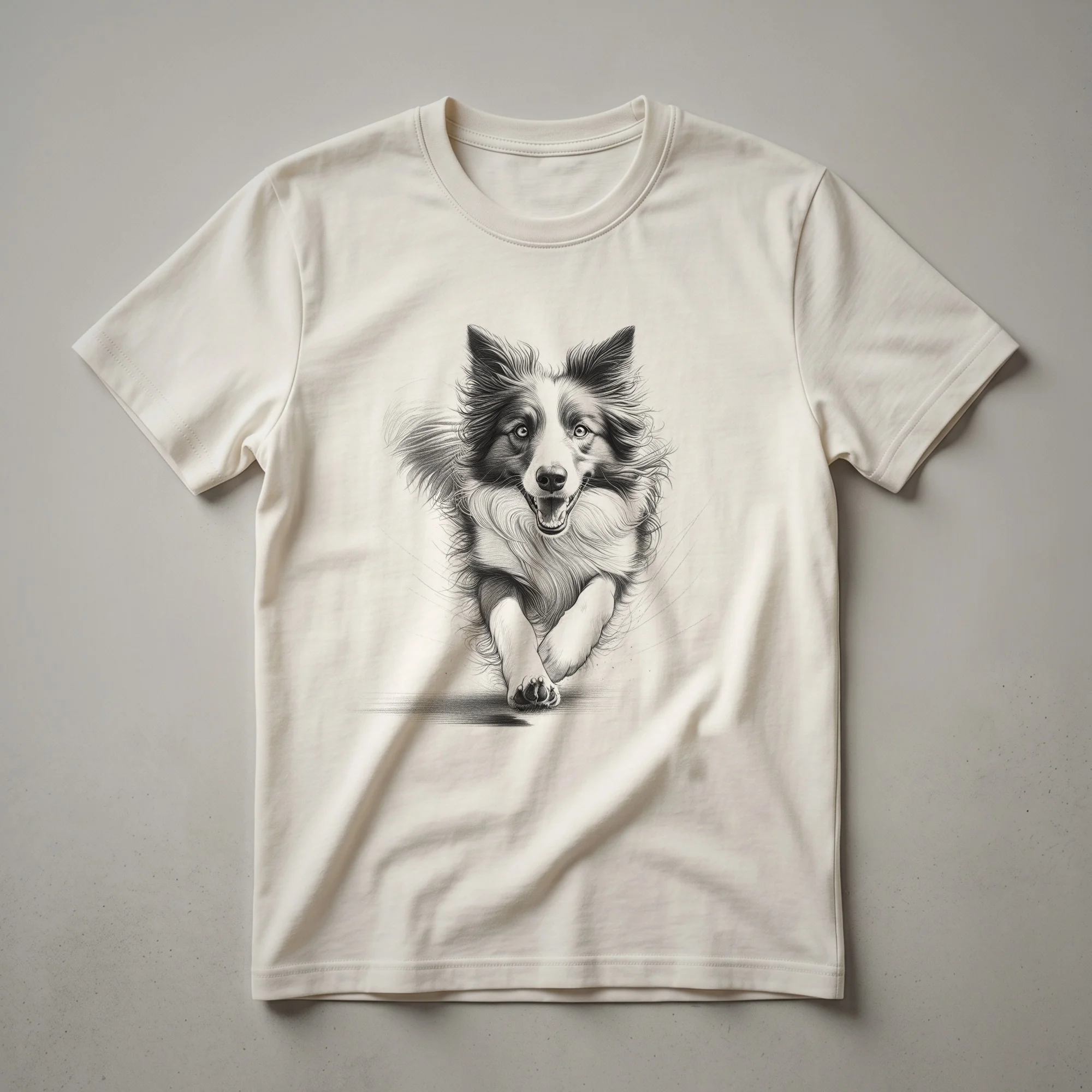 - Striking graphic tee showcasing a Border Collie in full stride, celebrating active dog owners.