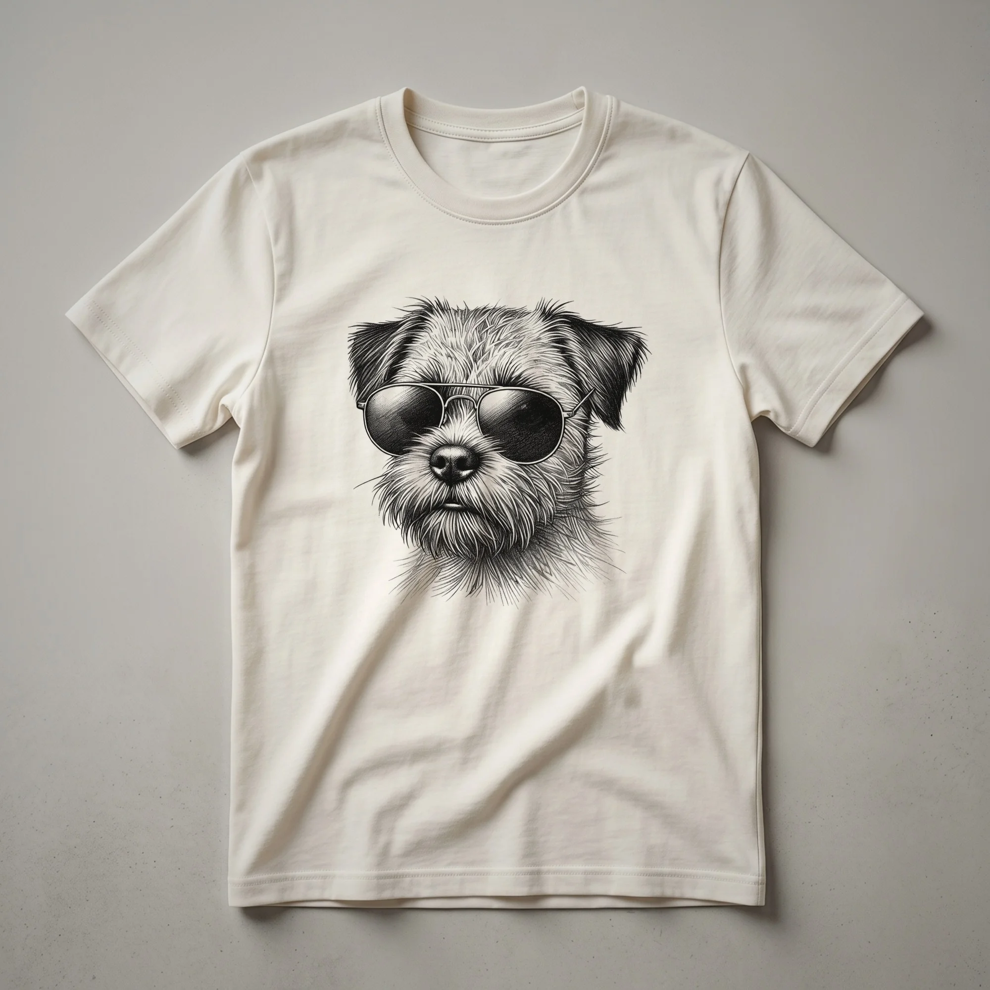 Border Terrier dads who love their canine companions will reach for this eye-catching graphic tee. The design showcases a spirited Border Terrier sporting cool sunglasses, set against a distressed American flag backdrop. This shirt celebrates the unique bond between a dad and his loyal Border Terrier, a breed known for its tenacity and friendly nature, originating from the border region of England and Scotland. It's a staple in the collection for any proud dog dad who wants to display his affection for his furry friend. This t-shirt makes a thoughtful gift for birthdays, holidays, or just because. Wear it to your next dog park visit, casual outing, or family gathering to spark conversations and share your love for your Border Terrier. This apparel is a great way for men and kids to express their patriotic spirit and their adoration for their four-legged family member.