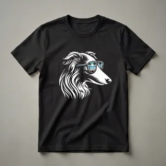 Borzoi owners who appreciate a touch of flair will reach for this eye-catching graphic tee. The design features a striking illustration of a Borzoi's head, rendered in bold white lines against a dark background. This elegant breed, known for its distinctive long snout and flowing coat, is depicted wearing cool sunglasses. The lenses of these shades offer a vibrant reflection of a tropical beach scene, complete with palm trees, sandy shores, and the ocean waves, evoking a sense of vacation and relaxation. Borzois, originally bred in Russia for coursing wolves, possess a graceful and athletic build, making them a unique subject for this artistic apparel. This t-shirt is a thoughtful gift for any Borzoi mom or dad who enjoys unique dog-themed clothing. It's a fantastic conversation starter and a way to express your affection for this noble breed. Wear this shirt to casual outings, dog park visits, or simply while relaxing at home, channeling that laid-back beach vibe.