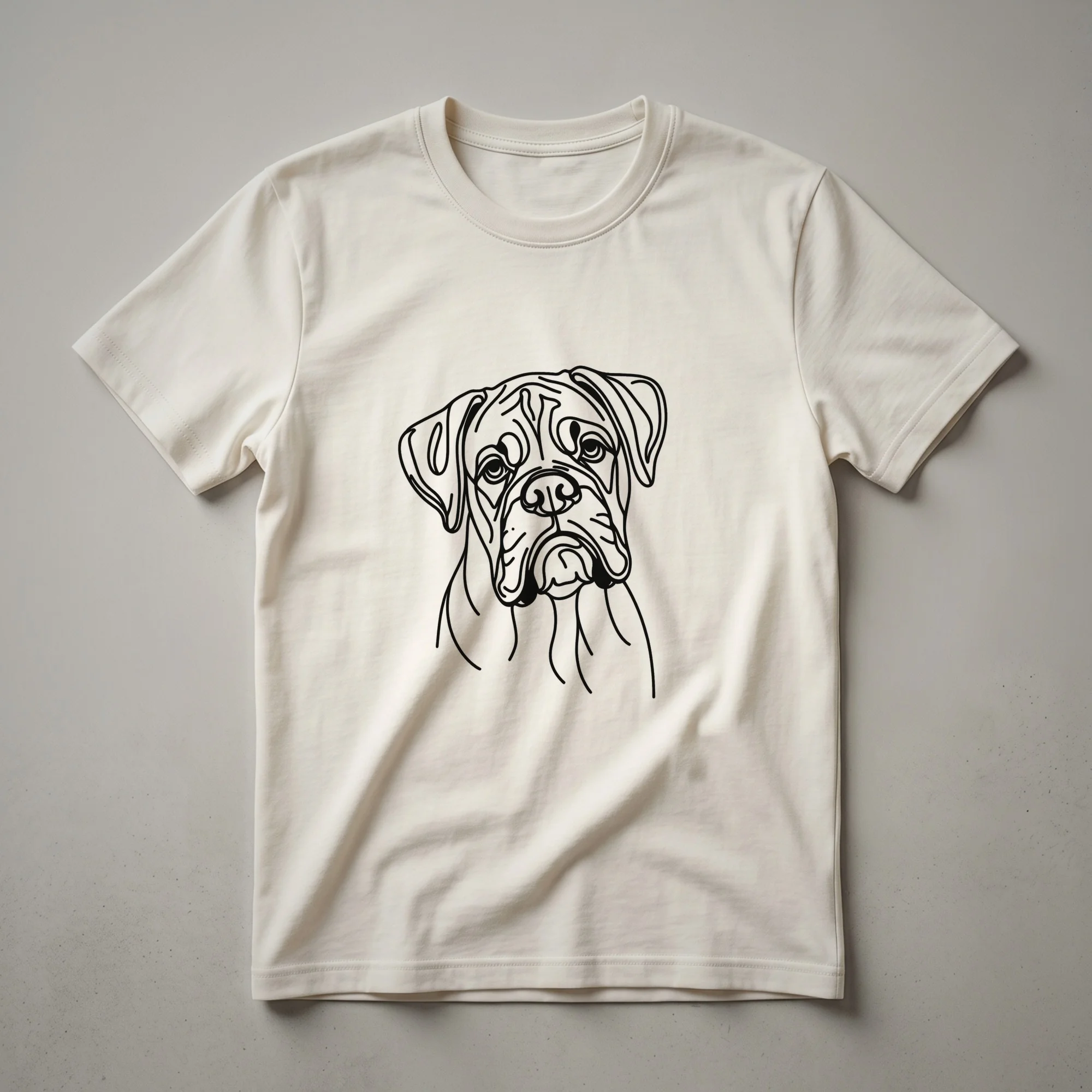 - Minimalist line art Boxer dog head graphic tee.