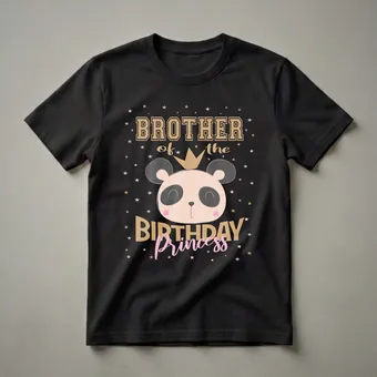 - Brother of the Birthday Princess tee featuring a cartoon panda with a golden crown.