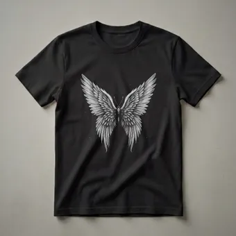 Nature lovers and admirers of intricate art will appreciate this unique t-shirt design. The graphic showcases a detailed pencil sketch of a butterfly, but with a fantastical twist: feathered angel wings spread wide. The artwork is rendered in black and white, with delicate shading that gives the wings a soft, ethereal texture. Tiny white dots scattered across the black background suggest a starry night sky, enhancing the mystical feel of the piece. Butterflies, like the Monarch or Swallowtail, undergo complete metamorphosis, a symbol of transformation and rebirth. This tee works well for anyone who finds beauty in the natural world and appreciates artistic interpretations of wildlife. It makes a thoughtful gift for women who love butterflies, art, or unique, nature-inspired apparel. Wear this eye-catching shirt to your next nature walk, art gallery visit, or casual outing to spark conversations about beauty and transformation. This shirt is a true conversation starter.