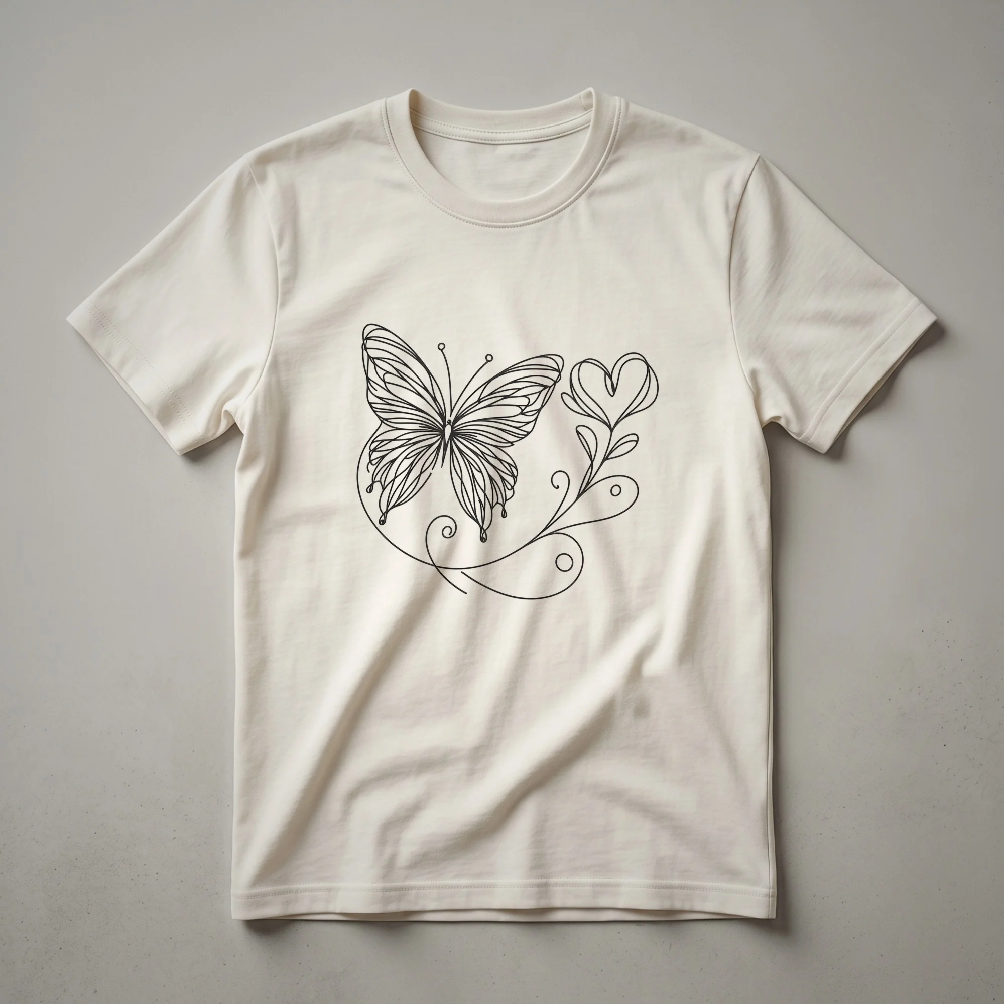 - Showcase your appreciation for butterflies with this minimalist line art heart graphic tee.